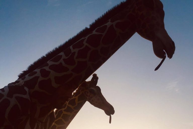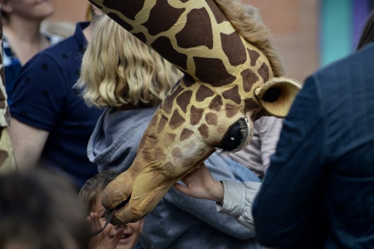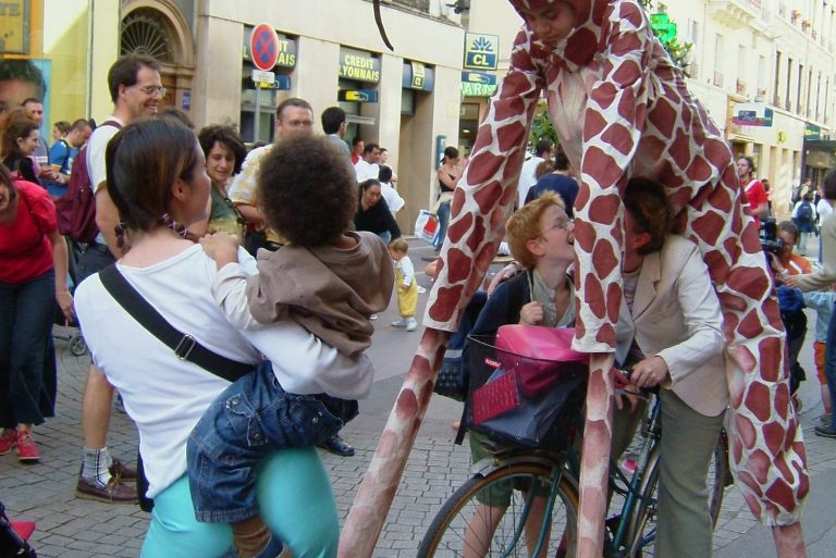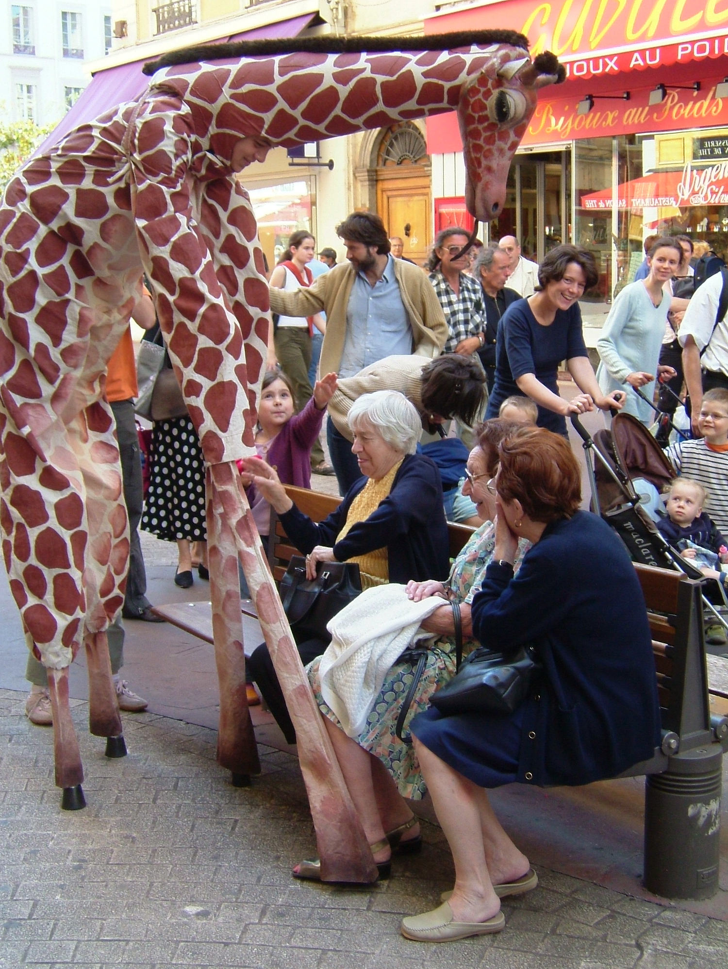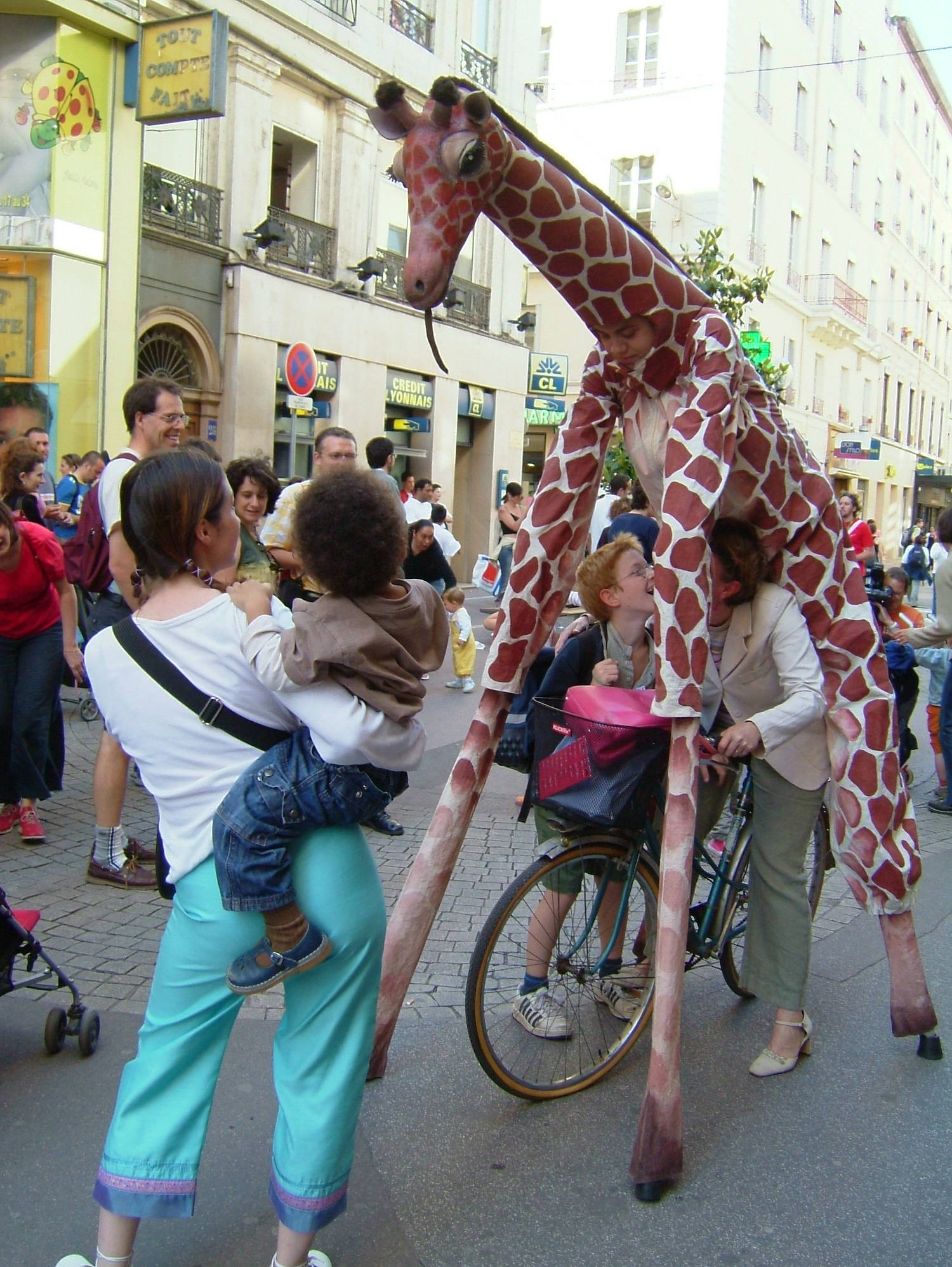 Una familia de Jirafas pasean elegantes y curiosas por las calles de la ciudad. Sorprendidas y desubicadas interactúan con todo lo que encuentran. Su ingenua curiosidad las lleva a crear situaciones surrealistas y poéticas. Espectáculo de calle itinerante. Una propuesta de altura y sin palabras para todos los públicos.