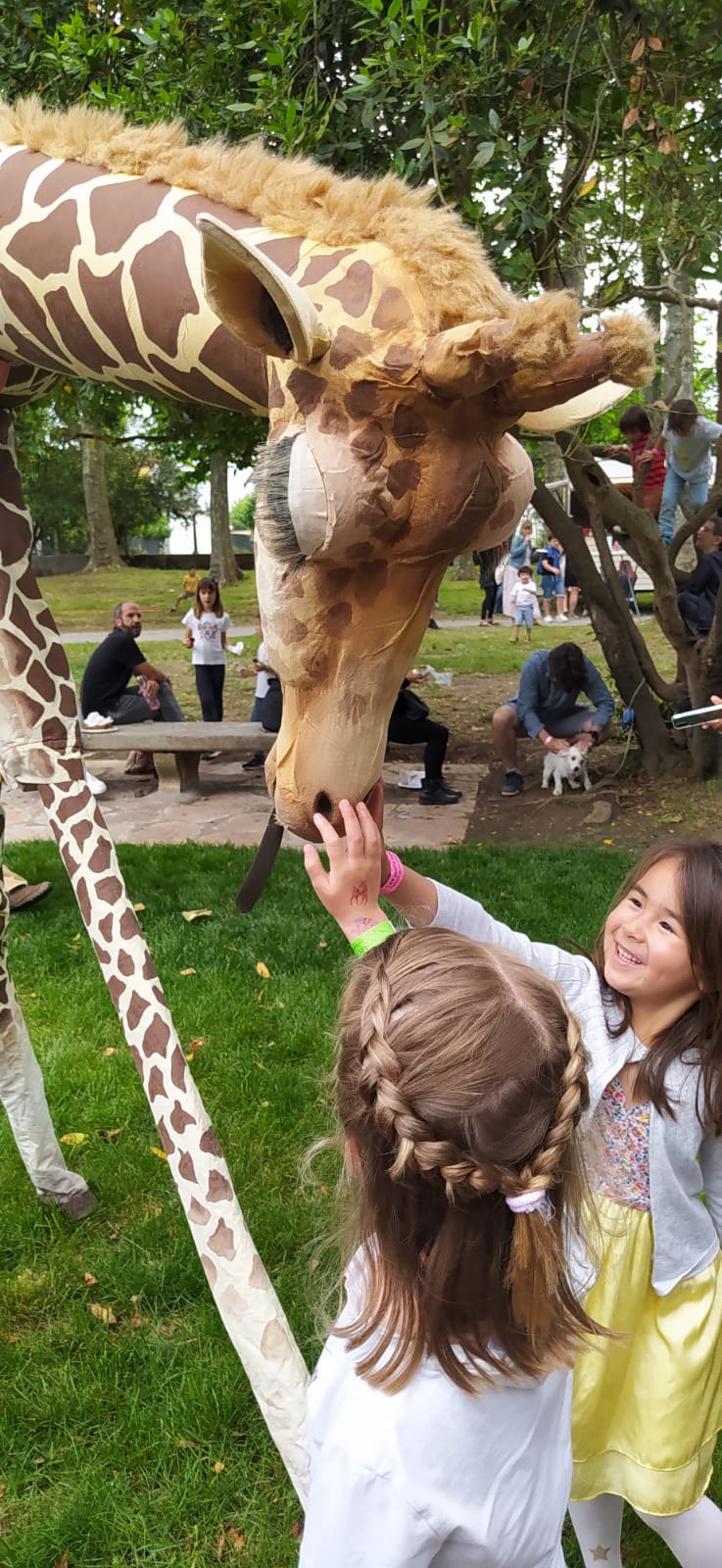 Hier, le défilé du spectacle « Girafes », dans le cadre du Festival de Teatre Infantil de Maó, a surpris les piétons qui se promenaient par le centre de Port Mahon par son originalité, sa beauté et surtout par la taille des trois spécimens coquins qui se promenaient par la ville et qui atteignaient presque trois mètres de hauteur. Gemma Andreu. 15/5/2016. Es Diari. Menorca (…) Atteindre avec une telle précision les cœurs des gens, transformer des regards, changer des attitudes et, surtout, arriver à réveiller sans utiliser des mots des réactions d’une tendresse inimaginable, cela a été l’un des meilleurs cadeaux que la vie nous ait offerts de la main des hommes (…) José Luis Rondon. 14/05/2006. Bailadores. Venezuela Magique et spectaculaire. Les trois girafes fascinent partout où elles vont, et les enfants sont hypnotisés par leur proximité. Elles irradient de la tendresse et du charme dans leur jeu avec les spectateurs. Ferran Baile. FETEN 2014