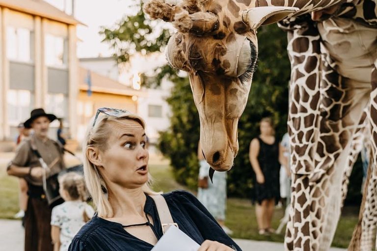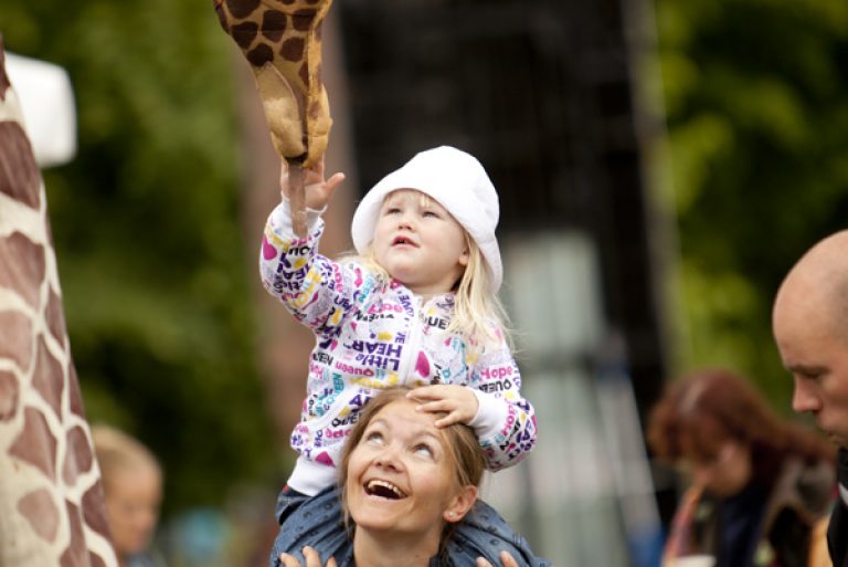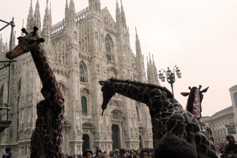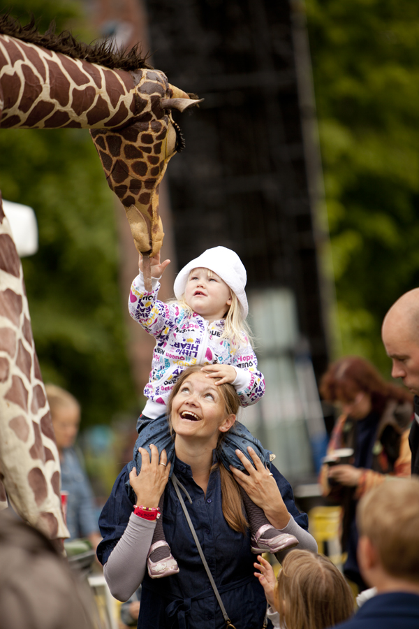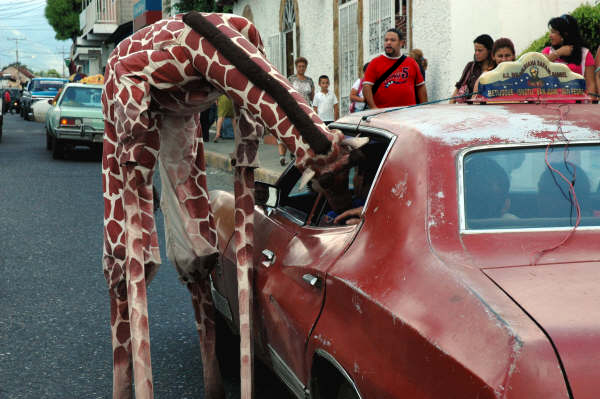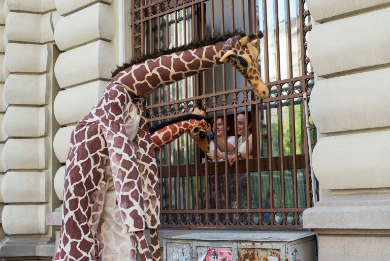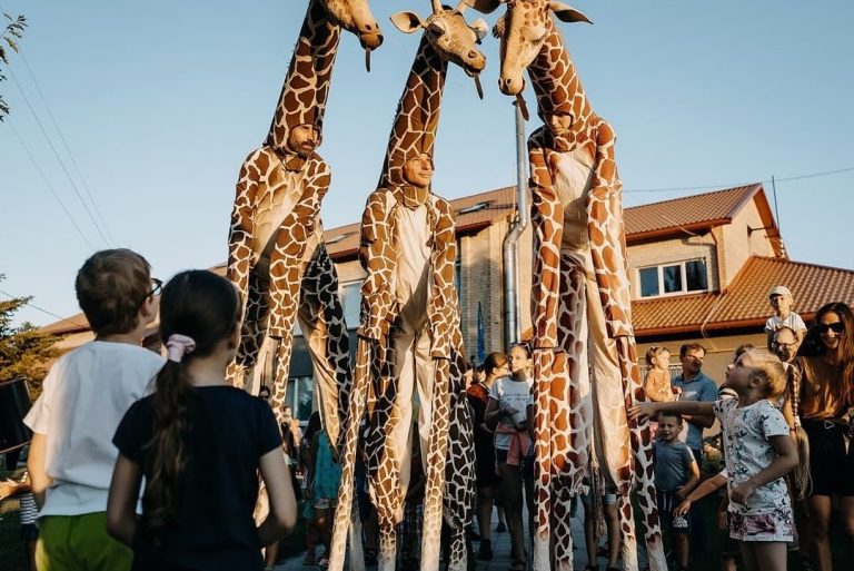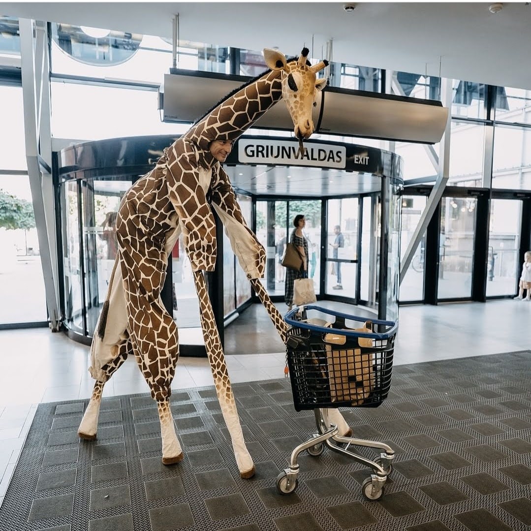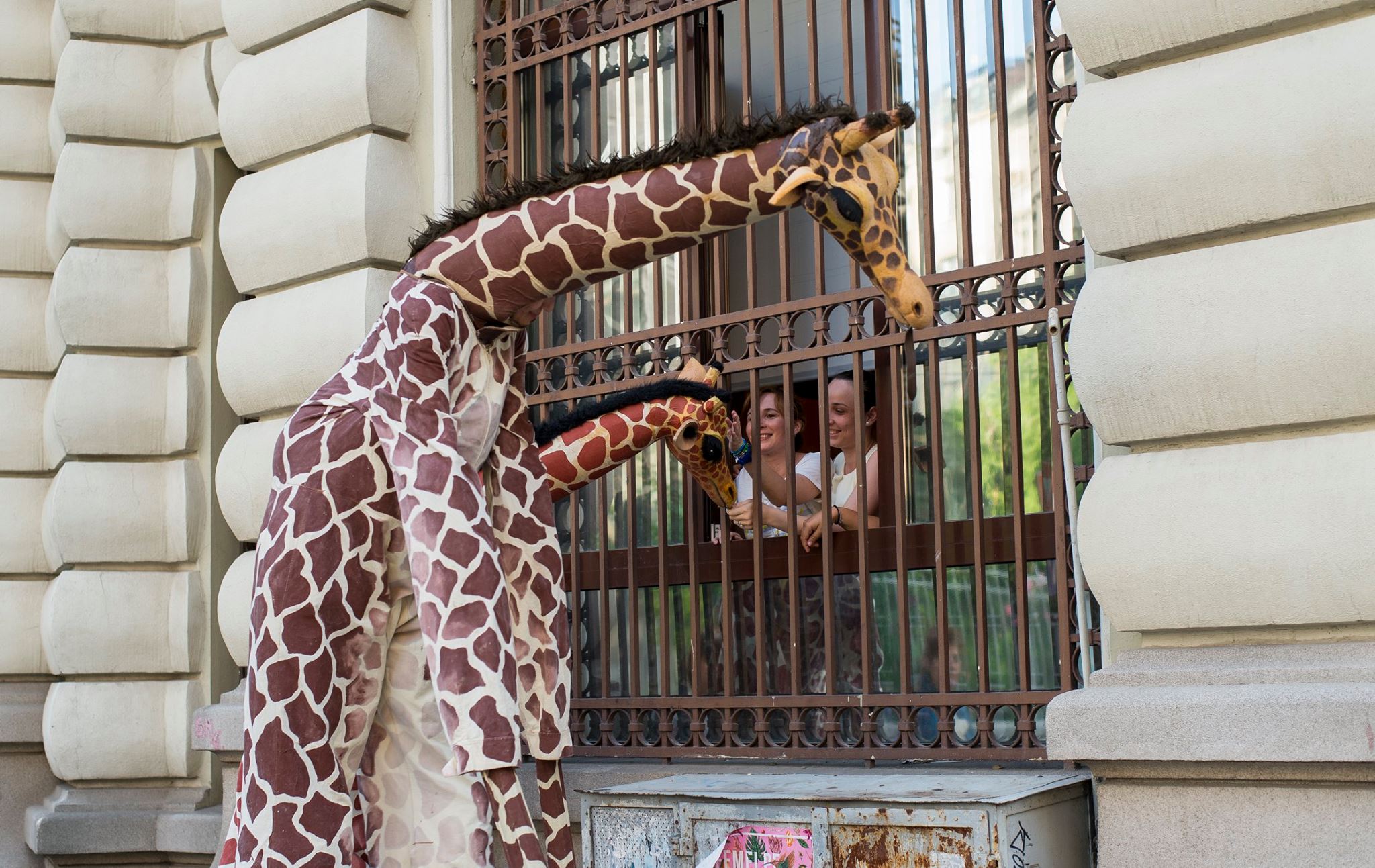 Une famille de girafes se promène au milieu de la civilisation. Surprises et désorientées, elles interagissent avec tout ce qu’elles trouvent. La curiosité les conduit à créer des situations surréalistes et poétiques à la fois. Spectacle de rue délicat et élégant. Spectacle en hauteur et muet pour tous les publics.