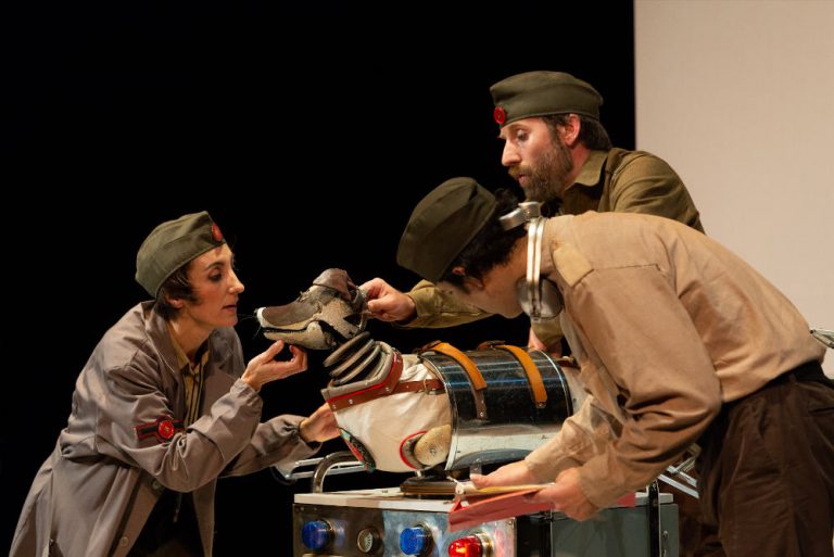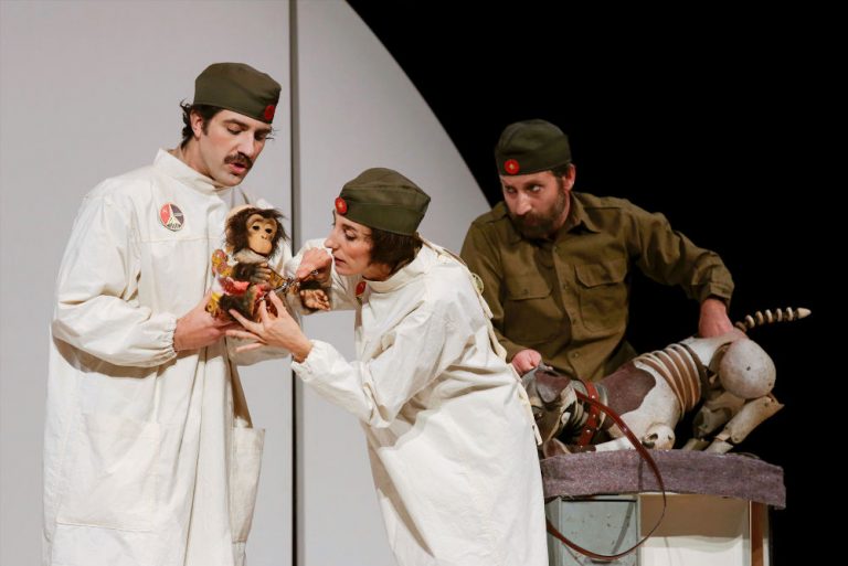 1957. Nous sommes à Moscou. En plein milieu de la Guerre froide et de la course à l’espace. Laika est une chienne qui survit dans les rues de la ville gelée. Elle n’arrive pas à imaginer que son destin va la mener à l’espace dans la navette Spoutnik II et qu’elle passera à l’histoire comme le premier être vivant à tourner en orbite autour de la Terre, et aussi à être victime d’abus dans les luttes pour le pouvoir d’autrui. Xirriquiteula Teatre utilise dans ce spectacle des techniques aussi diverses que les rétroprojections créées en direct, les marionnettes, les automates, les ombres et l’interprétation de la part des acteurs de personnages qui parlent un russe inventé, accompagnés d’une belle bande de son. Et tout cela bien cartonné, fruit d’un travail collectif long et intense où chacun fournit ses habiletés et connaissances. Un spectacle adapté à tous les publics, recommandé à partir de 4 ans, qui nous parle des merveilles du ciel mais aussi des injustices de la Terre.